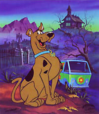 | Drawings of different scooby poses will be used as reference for a dancing scooby shadow. The flowers that are found on the van, car, and in the portrait with the heart above will be incorporated into the scene also. | |||
